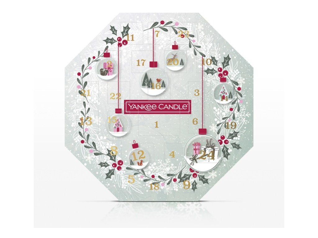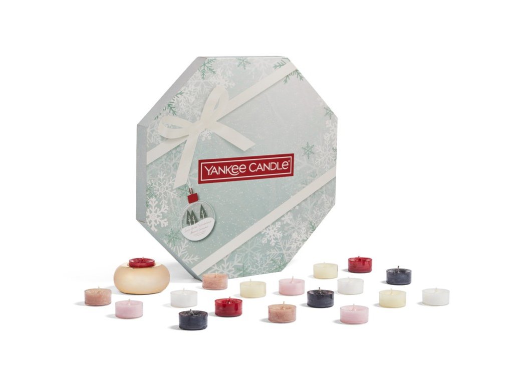 Každý prosincový den nové překvapení! Kalendář obsahuje 24 čajových svíček, vždy po 3 kusech od vůně: Snow Globe Wonderland, Snowflake Kisses, Peppermint Pinwheels, Spun Sugar Flurries, Winter Night Stars - to jsou vánoční novinky - a dále: Christmas Cookie, Bayside Cedar, Amber & Sandalwood. Najdete v něm také čirý skleněný svícínek na čajovou svíčku.