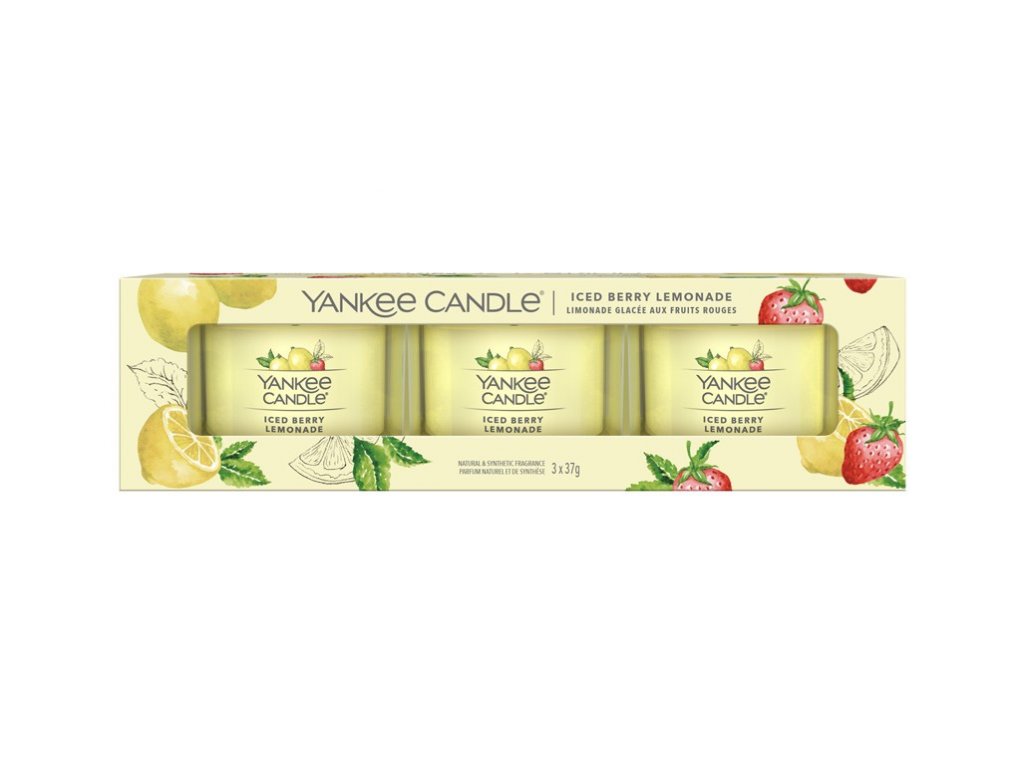 Yankee Candle Iced Berry Lemonade sada votivních svíček ve skle 3 x 37 g